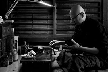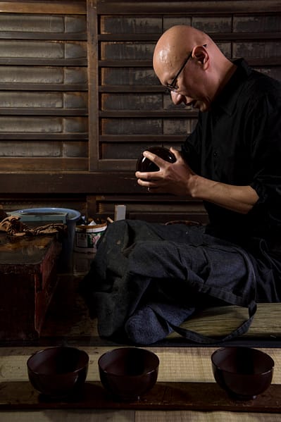 In celebration of our current Art in the Garden exhibition, Shokunin: Five Kyoto Artisans Look to the Future, each week we’ll feature one of the five artists whose work is showcased in the exhibition. Previously, we featured Hosai Matsubayashi, Shuji Nakagawa, and Chiemi Ogura. This week, we’re sharing the work of Keikou Nishimura, a third generation lacquer artisan, who specializes in uwa-nuri, the application of the final coat of urushi, a natural lacquer that has been used for over 9,000 years.
