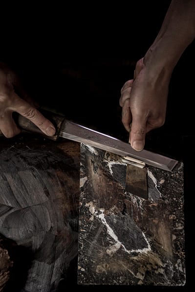 “I can’t stop feeling the presence of nature while I’m working with urushi lacquer. Fine lacquerware cannot be obtained without the blessings of nature. Urushi is a resin; it is the blood of the urushi tree, shed when the bark is cut and the tree tries to cure its wounds by seeping lacquer. It feels so real and so alive. Science tries to explain it this way: urushi hardens at 70% humidity and 77°F temperature. But there is more to it than that. Same goes for wood. I ask a wooden base, ‘Which way do you want to curl?’ The answer is never the same.” – Keikou Nishimura