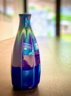 Why sake vessels? Anderson is often asked by fellow collectors and art professionals, to which he usually responds, “There are two basic kinds of shuki. Tokkuri (sake flasks) and guinomi (sake cups). Every national food has an etiquette that accompanies it. In Japan, as elsewhere, meals are shared moments with different kinds of pottery bringing the best out of the food. Probably the most famous shared eating/drinking experience in Japan is the tea ceremony. But just getting together with friends at a restaurant to eat and drink is a communal experience. Etiquette demands that one does not fill one’s own guinomi while drinking unless alone. Your neighbors are supposed to make sure that your guinomi is never empty, and you do the same for them. You take care of family and friends in this simple way. This simple act with these small vessels is a window into Japanese society. In addition, I enjoy drinking sake!”